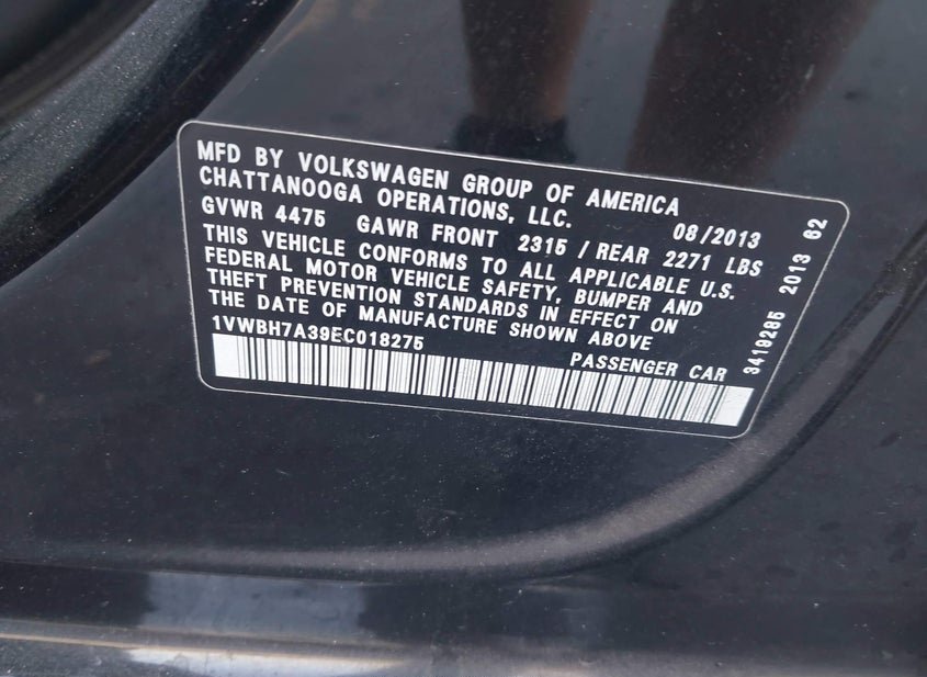 - VIN: 1VWBH7A39EC018275