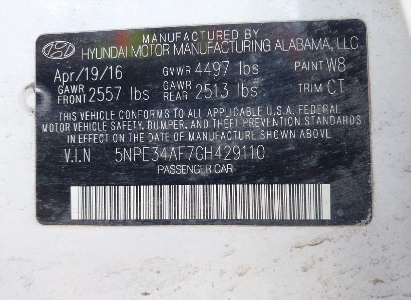 - VIN: 5NPE34AF7GH429110
