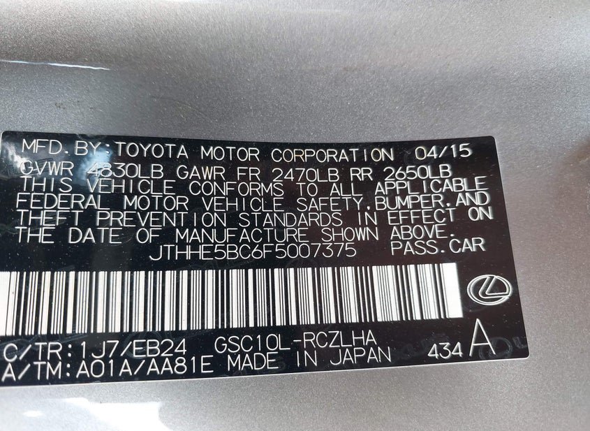 - VIN: JTHHE5BC6F5007375