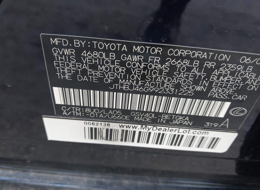 - VIN: JTHBJ46G992331225