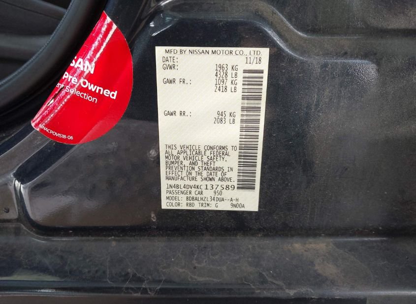 - VIN: 1N4BL4DV4KC137589