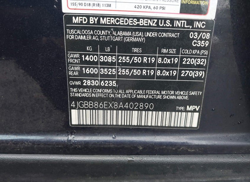 - VIN: 4JGBB86EX8A402890