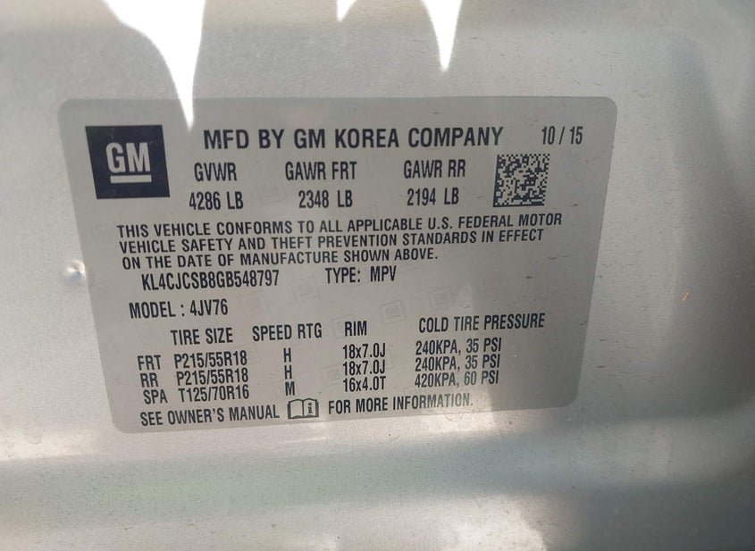 - VIN: KL4CJCSB8GB548797