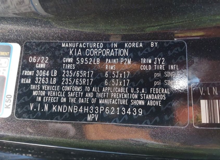 - VIN: KNDNB4H33P6213439