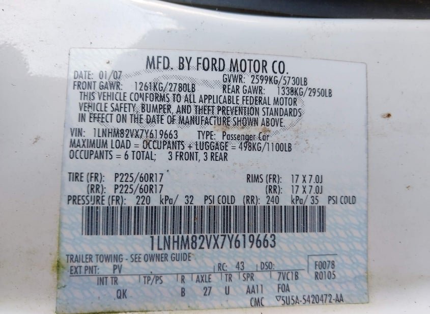 - VIN: 1LNHM82VX7Y619663