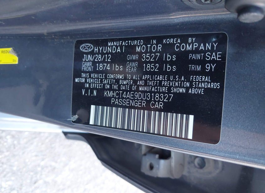 - VIN: KMHCT4AE9DU318327