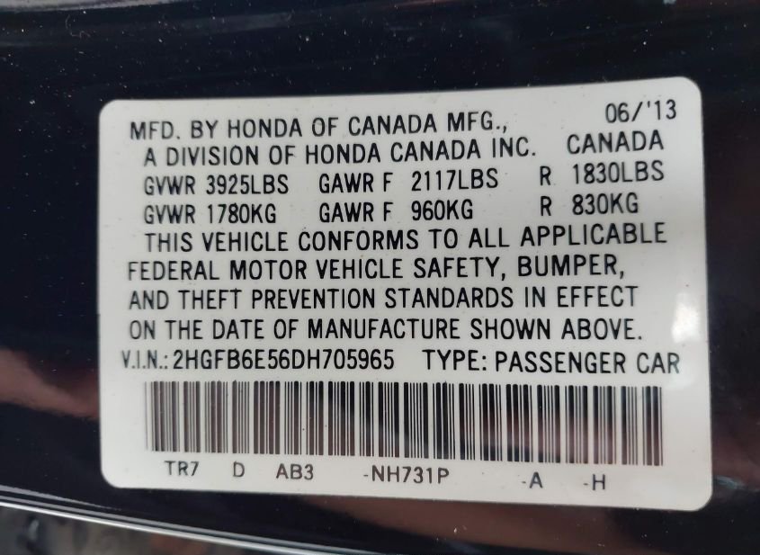 - VIN: 2HGFB6E56DH705965