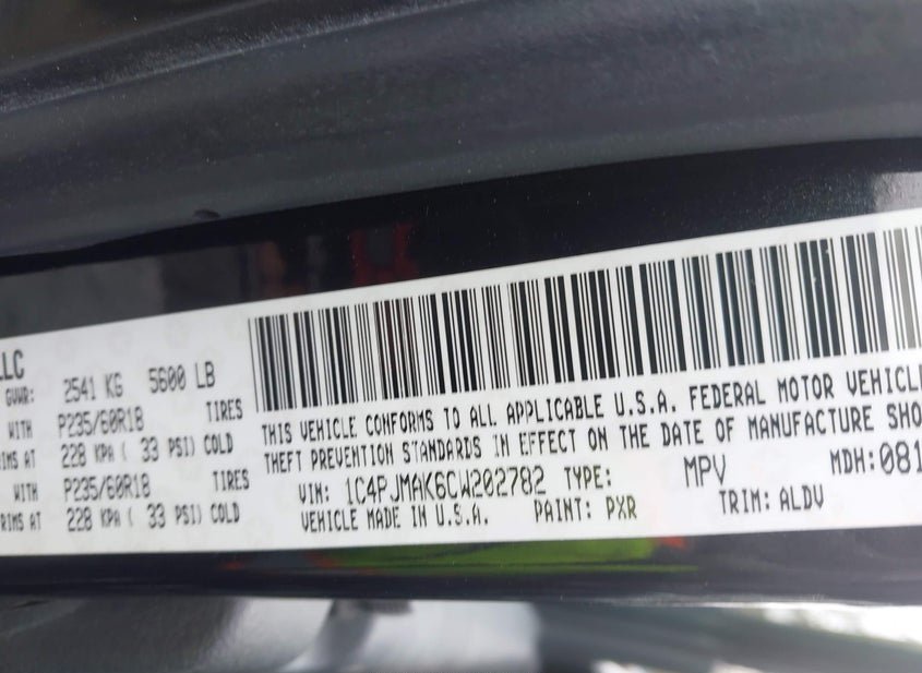 - VIN: 1C4PJMAK6CW202782