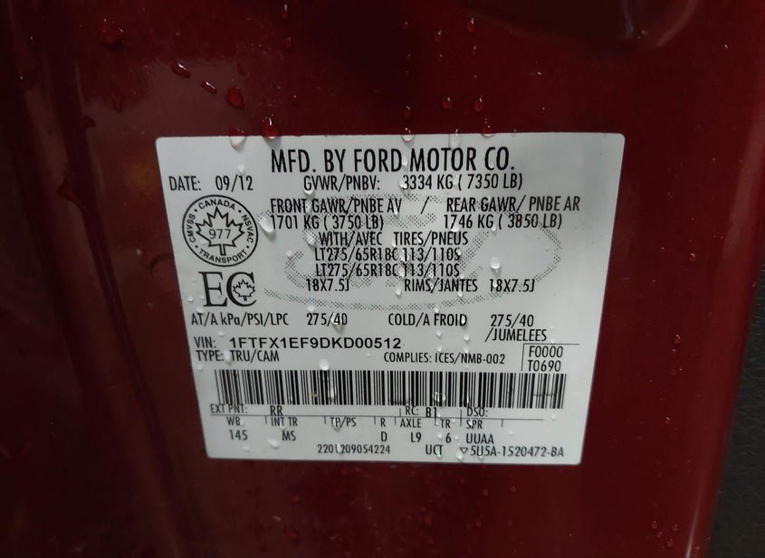 - VIN: 1FTFX1EF9DKD00512