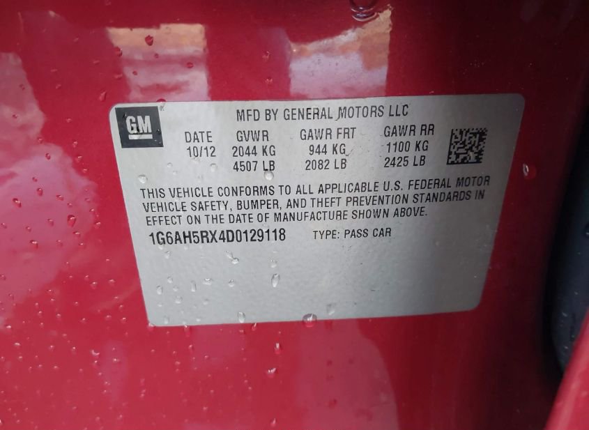 - VIN: 1G6AH5RX4D0129118