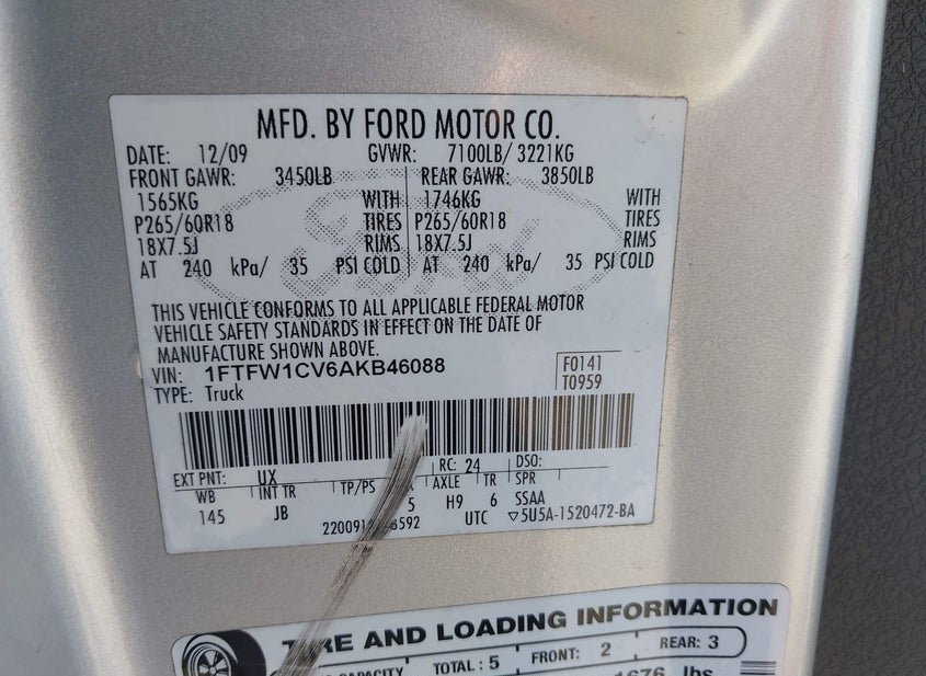 - VIN: 1FTFW1CV6AKB46088