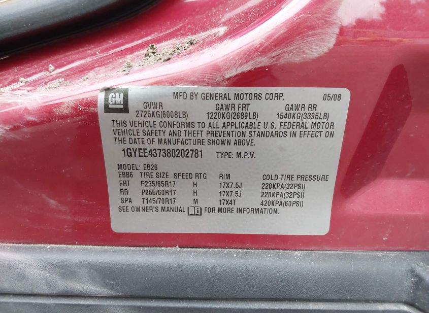 - VIN: 1GYEE437380202781