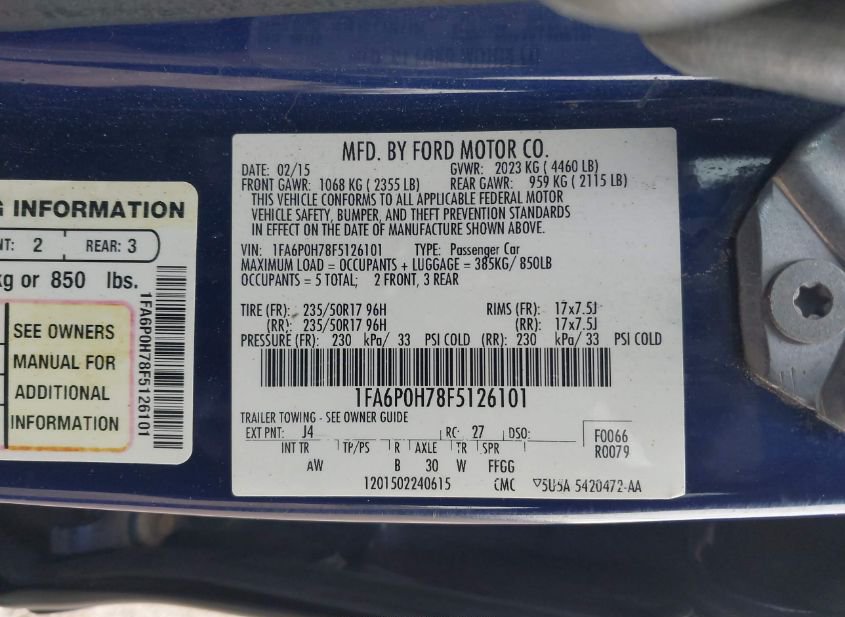 - VIN: 1FA6P0H78F5126101