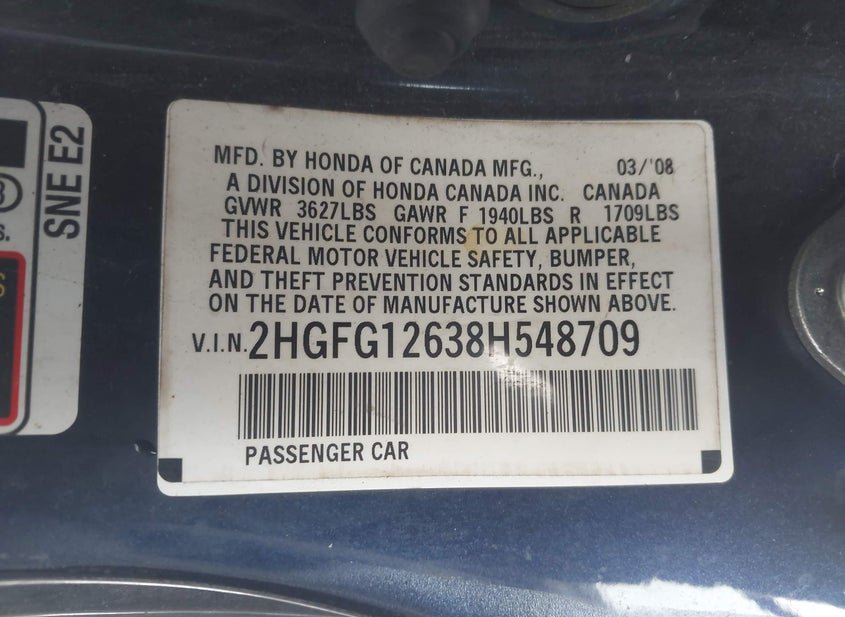 - VIN: 2HGFG12638H548709