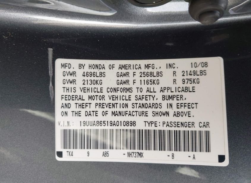 - VIN: 19UUA86519A010898