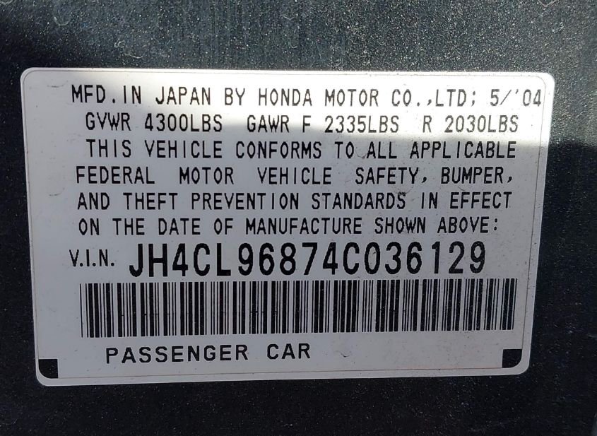 - VIN: JH4CL96874C036129