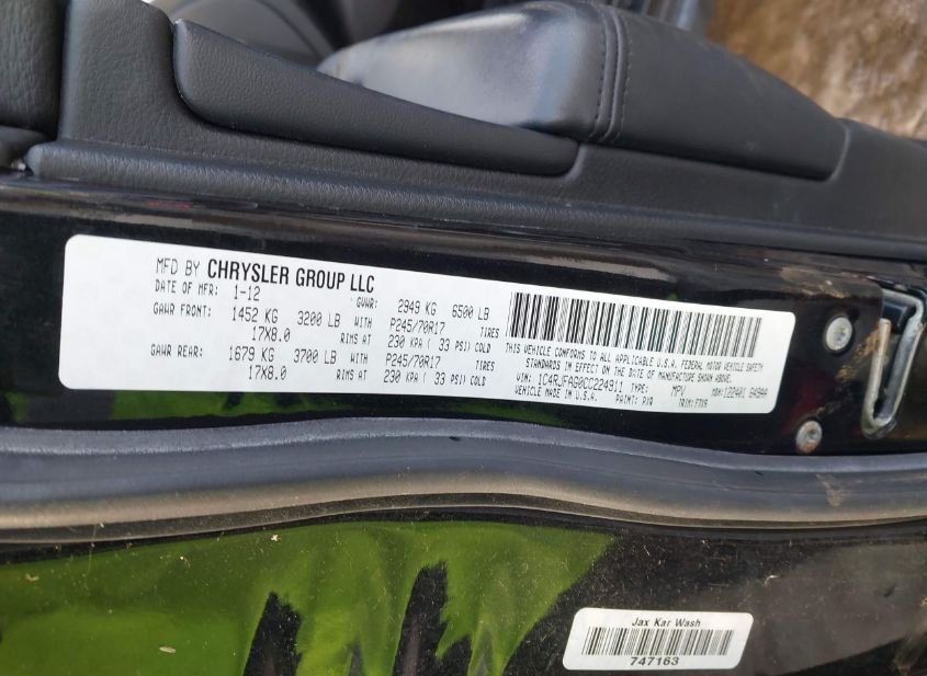 - VIN: 1C4RJFAG0CC224911
