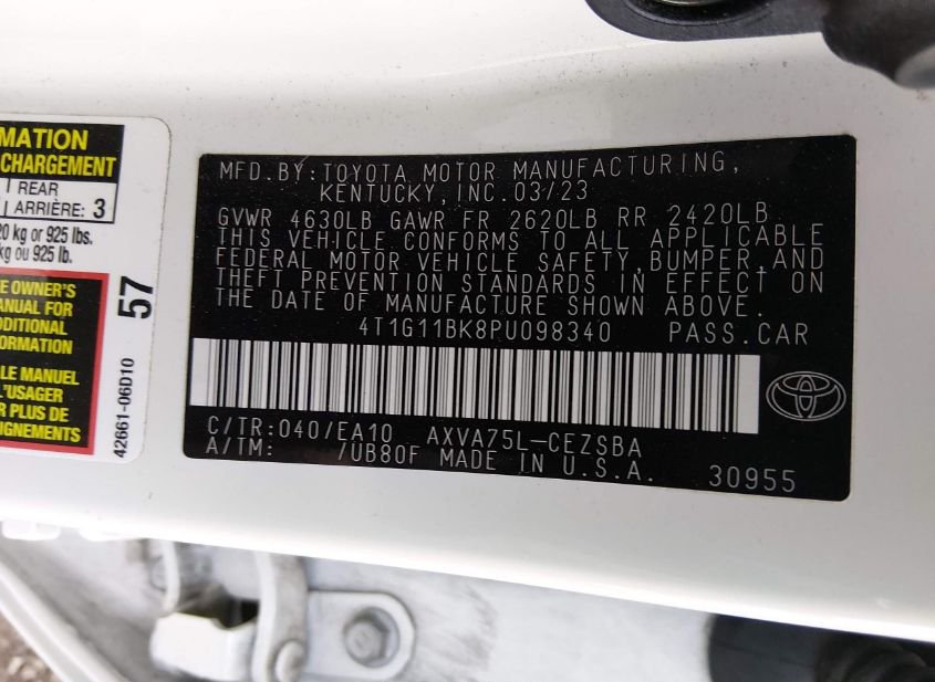 - VIN: 4T1G11BK8PU098340