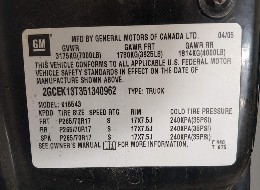 - VIN: 2GCEK13T351340962