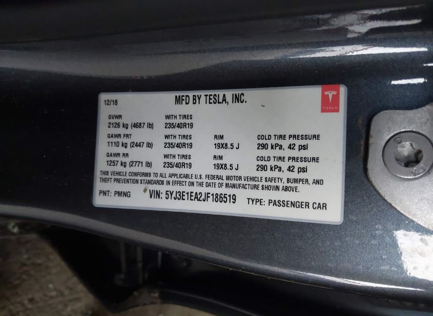 - VIN: 5YJ3E1EA2JF186519