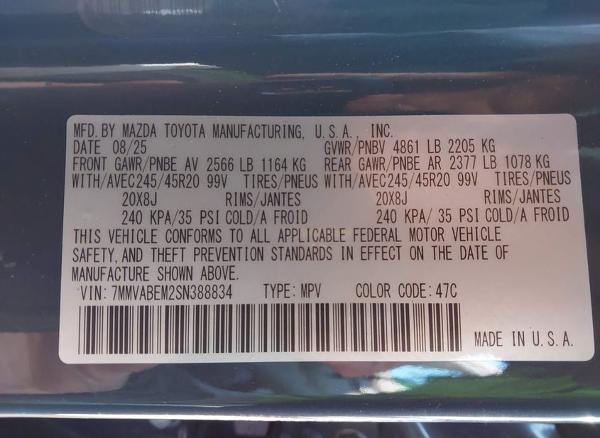 - VIN: 7MMVABEM2SN388834