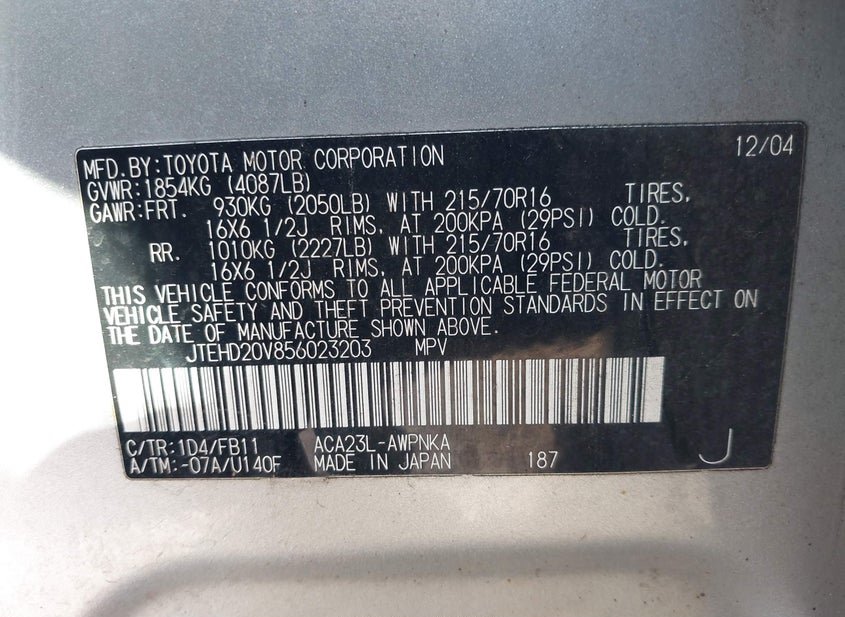 - VIN: JTEHD20V856023203