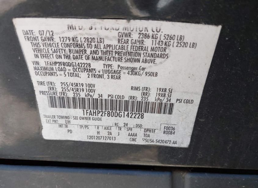- VIN: 1FAHP2F80DG142228