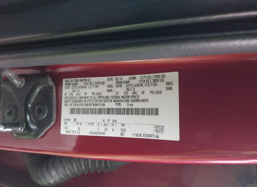 - VIN: 1FTEW1EG8GFB80139