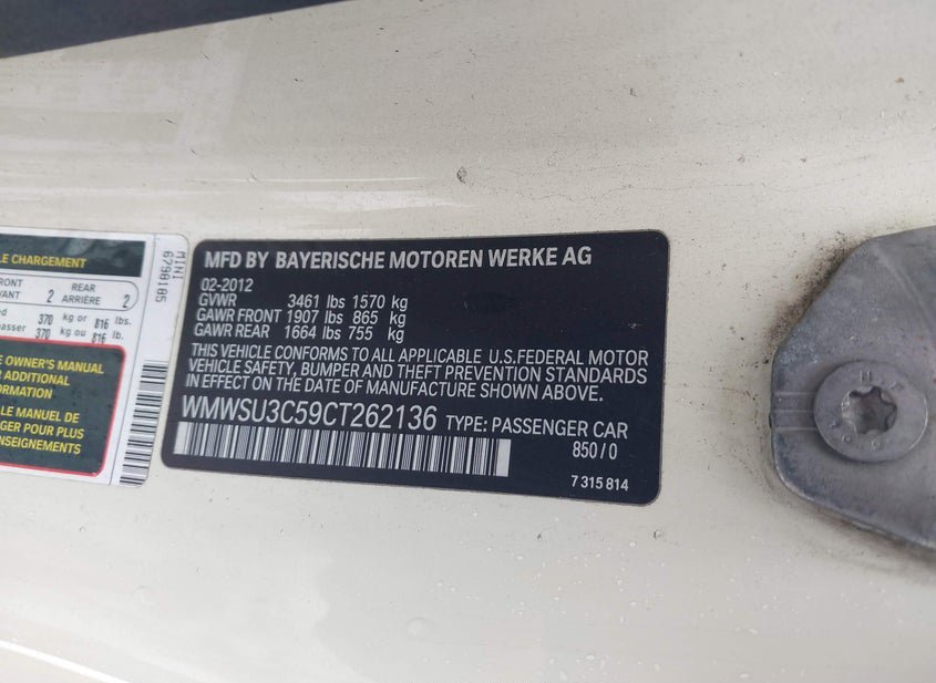 - VIN: WMWSU3C59CT262136