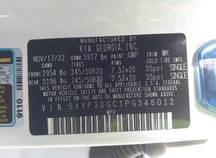 - VIN: 5XYP3DGC1PG346012