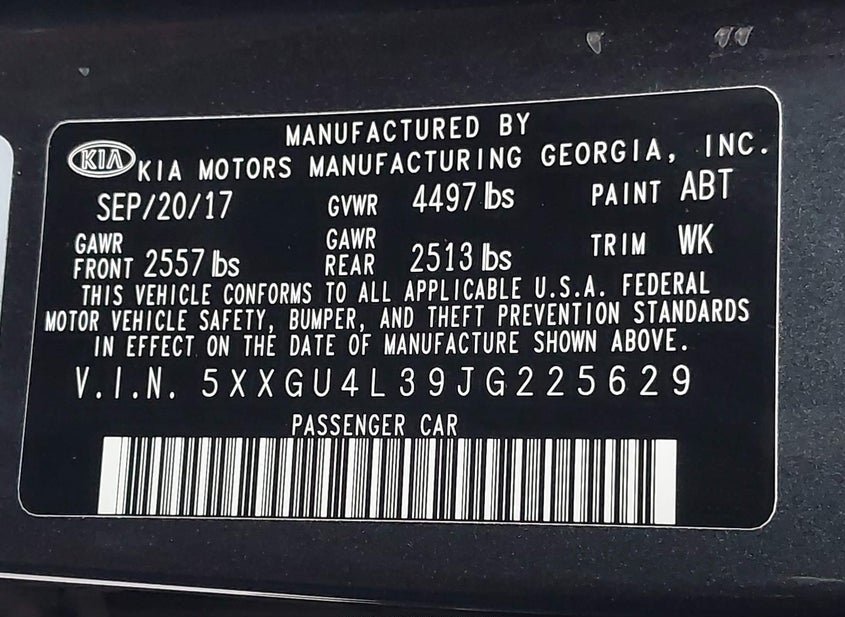 - VIN: 5XXGU4L39JG225629