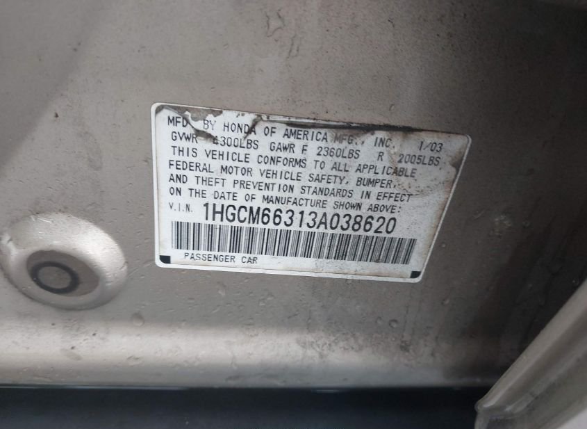 - VIN: 1HGCM66313A038620