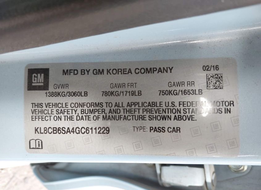 - VIN: KL8CB6SA4GC611229