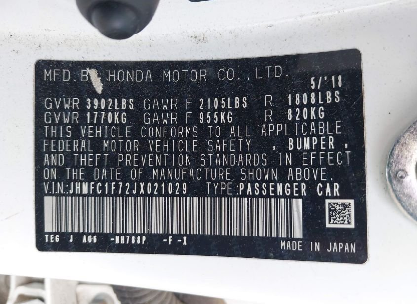 - VIN: JHMFC1F72JX021029