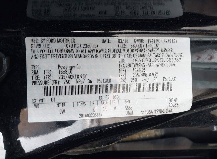 - VIN: 1FADP3L91GL305787
