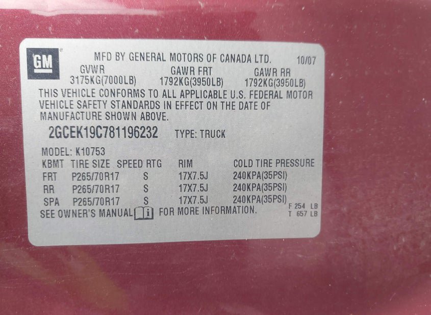 - VIN: 2GCEK19C781196232