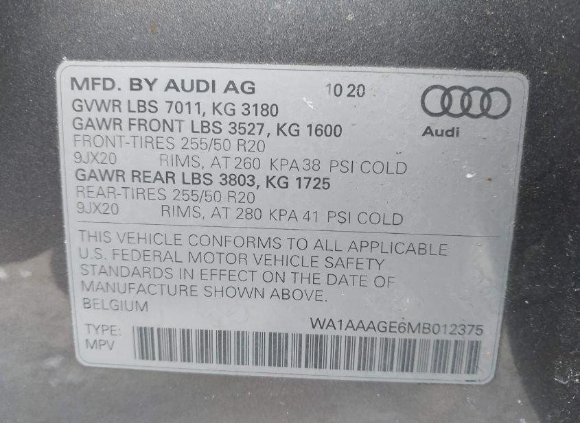 - VIN: WA1AAAGE6MB012375