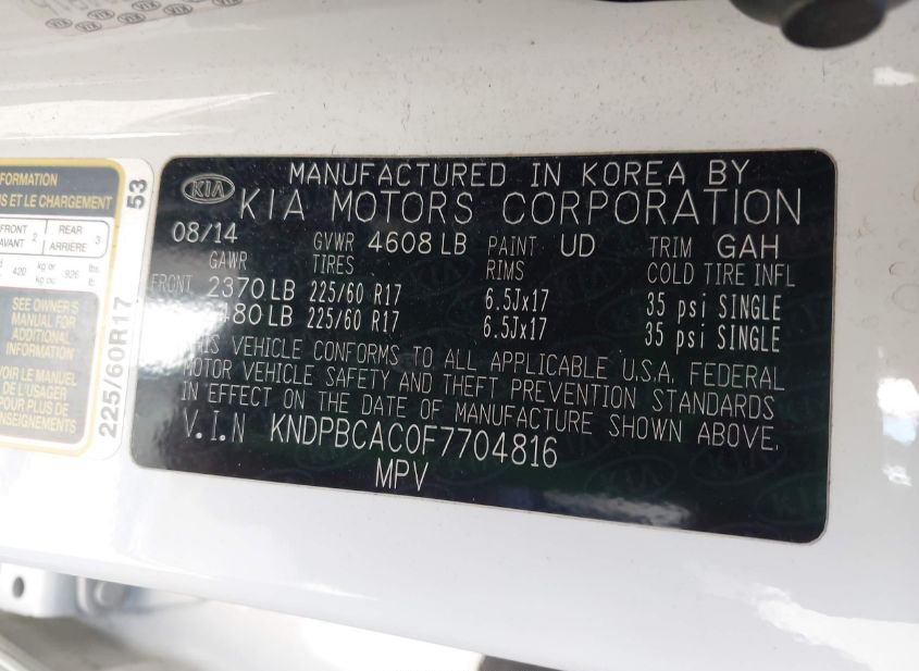 - VIN: KNDPBCAC0F7704816