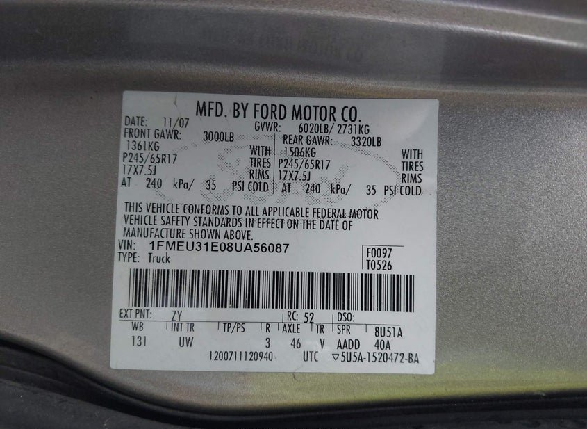 - VIN: 1FMEU31E08UA56087