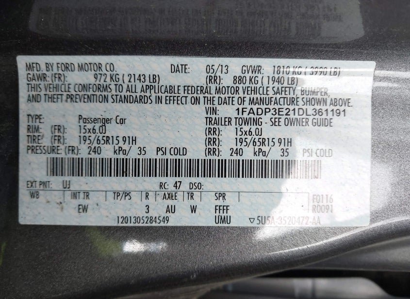 - VIN: 1FADP3E21DL361191