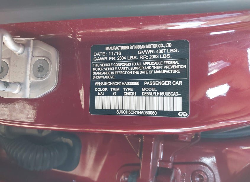 - VIN: SJKCH5CR1HA030060