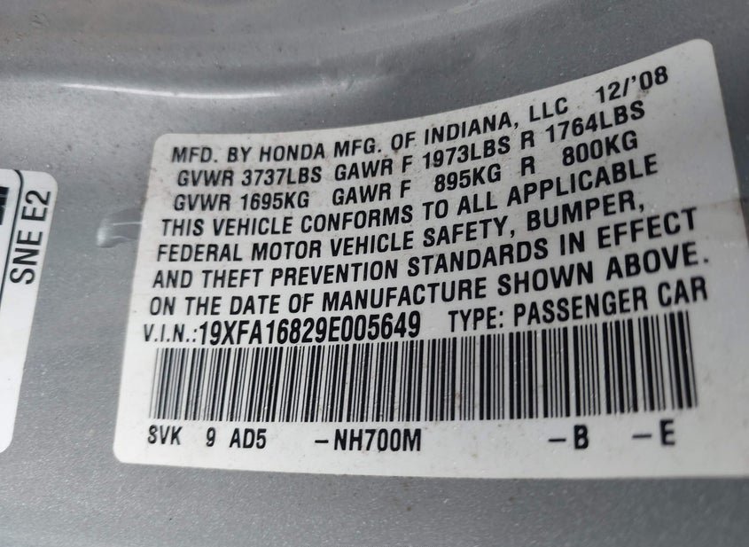 - VIN: 19XFA16829E005649