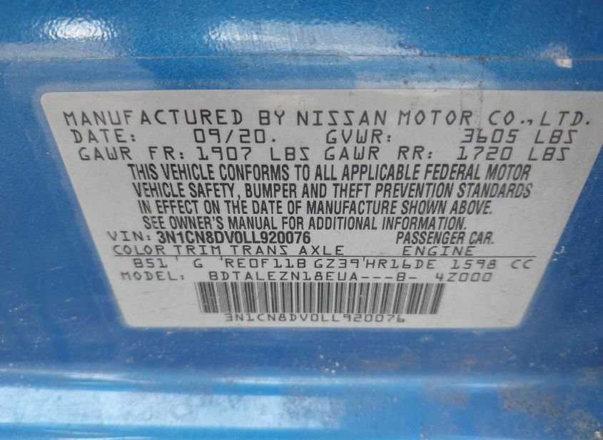- VIN: 3N1CN8DV0LL920076
