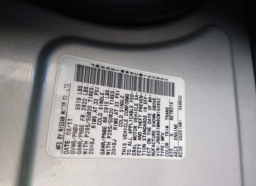 - VIN: JN8AS1MW6CM150652