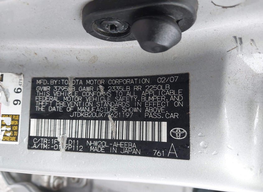 - VIN: JTDKB20UX77621197