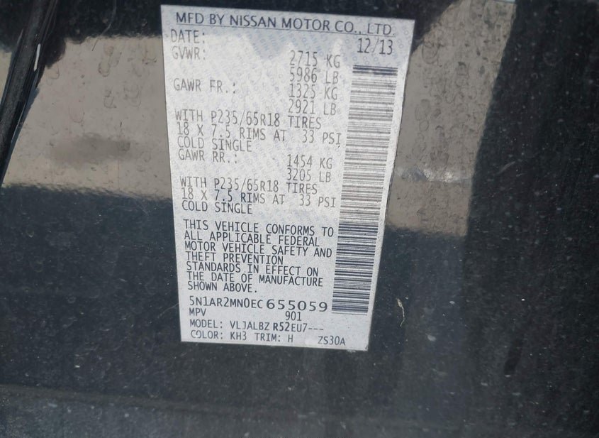 - VIN: 5N1AR2MN0EC655059