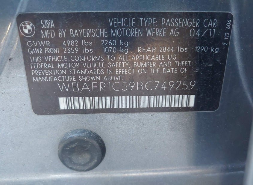 - VIN: WBAFR1C59BC749259
