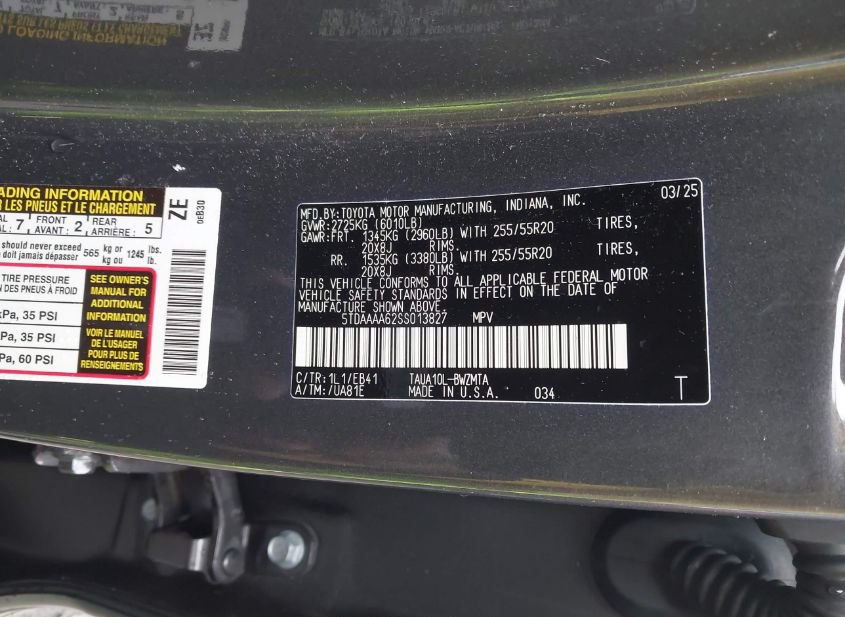 - VIN: 5TDAAAA62SS013827