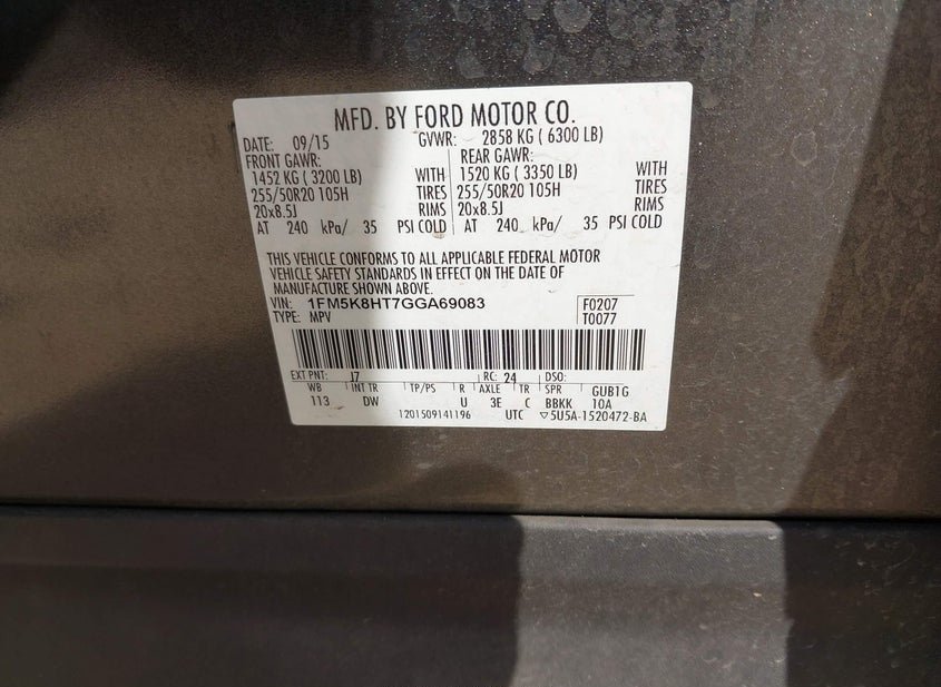 - VIN: 1FM5K8HT7GGA69083