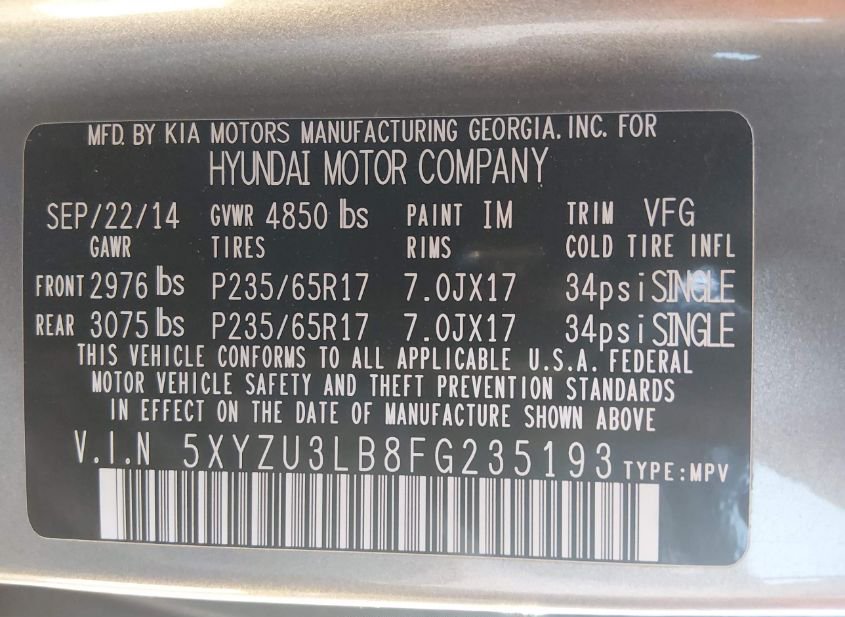 - VIN: 5XYZU3LB8FG235193